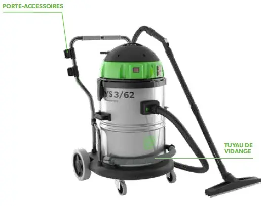 3 moteurs pour un puissance exceptionnelle et cuve inox (ou plastique avec la version YP) de 62 litres avec tuyau de vidange.