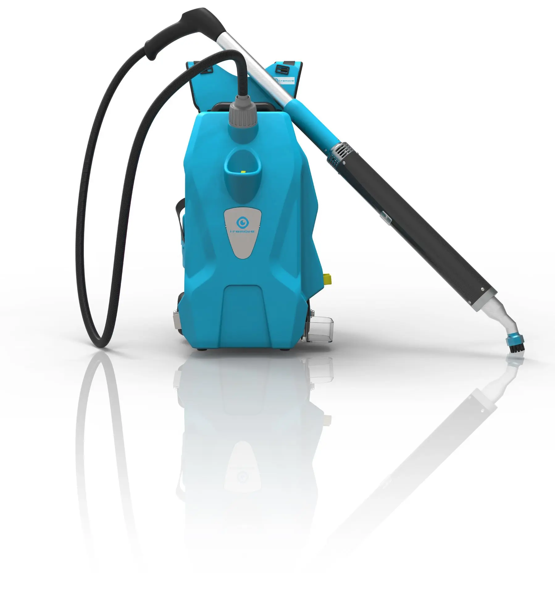 Conçu pour les environnements plus vastes ou des tâches plus intensives, ce modèle s’utilise en sac à dos ou en chariot, offrant une grande liberté de mouvement sans fatigue pour l’opérateur.